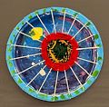 this looks like the universe in the background with the woven circle being a 'black hole' in the universe. Let's talk about what you were thinking. Great Stuff!!