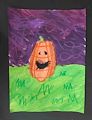 Andrew-- It's fun to see a happy smiling pumpkin! The sky looks a little stormy around him! I like that you added some darker blades of grass for contrast. Nice job on this project!