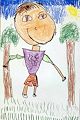 Hudson, your self-portrait has the BIGGEST smile!!!! That tells me you are a happy boy, which makes me happy! As I look at your painting it seems as if you were playing a sport and you won! The tally marks behind you look as though you scored a lot of points!! Keep on painting!!!! ??Gigi