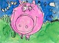 Fabulous use of colors and shapes. She looks like a very happy pig. The artist really captured that with the eyelashes.Beautiful picture and very proud of your Artistic ability.XO