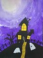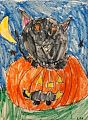 I like that you draw parts of the cat's body in the mouth of the Jack 'o Lantern so that it's a complete cat. Keep up the good work.