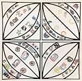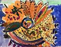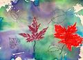 Beautiful colors and creative drawing style. I love the multi colored background original drawings of the leaves.