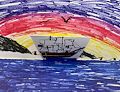 I wonder where your ship is sailing Micah? I love the birds in the sky above the ship. Colorful ocean and horizon. Looks like an old sailing ship back in the days of the explorers. Hope you find land. Love Dad