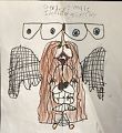 To me this looks like a sad dog angel with a little girl saying goodbye. I’m probably completely wrong but that’s my interpretation of what it represents. I think this is a great drawing and a lot of feelings and thoughts are involved.