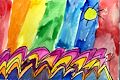 You did a great job capturing Ted Harrison’s swirly, brilliant colors! I hadn’t known of his work till now and so you have taught me something special, Evy, thank you. I love the movement of the magenta & yellow waves against the rainbow stripes. It is very eye catching and engaging. Super work! x