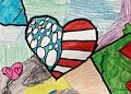 We love your heart art Reid! We like your colors of red, white and blue, and your design inside the big heart. Also like the little pink one. Keep up the great artwork, you are very creative! Love you!