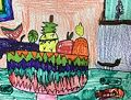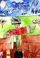 Your choice of colors are amazing Reid! Grandpa likes the bow tie, and the bugs crawling out of your scarecrows head! Keep up the great art work, we love you ??