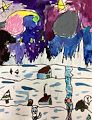 Your starry night winter landscape is beautiful! We love your colors in the nighttime sky, and love the home with smoke rising from the chimney. Looks like the animals are having fun in the snow. Keep up the great artwork!