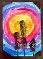 Wow! Love how you made purple from red and blue paint. The lines are like love going from your heart to your family and friends. Great Job? Love Grammy and Gramps