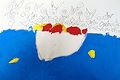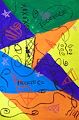 I love this Caitlin! I love the colors - the bright orange and purple with the green and blue - and I love the squiggles and random doodles - the repetition and placement is perfect. At first I wasn't sure what the doodle was in the green area - but just realized they are happy faces and kind of like - "whatever" faces. Graet job! I think this could be framed as a modern piece of art!