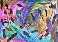 Hi Larkin. I really like your new artwork! The colors are so bright and beautiful and there is cool movement throughout the piece. Good job! Love you.