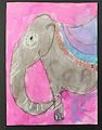 Oh Louie! This is so incredibly beautiful! I love the elephant's eyes and all the markings and the ears! I love all the colors that you used, from the pink background to all the colors on the blanket. The blanket even has orange fringe! I would love to have a copy of this to hang here at our house. You and Pauline are such artists. I am so proud of you. Thank you for making such pretty art and thank you for sharing it with us.