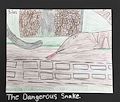 What an interesting work of art, Silas! I wonder what the dangerous snake is up to……can you give me a hint?