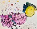 Sutton, We love the colors you used on the bird. The pink body with a splash of blue is so beautiful. You are so talented. Grandma and Papa look forward to your drawings. Love you.
