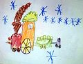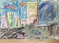 Hey Daden, We love your dinosaur!! You did a great job on your squares and rectangles for your buildings!! The colorful clouds look fun! What a wonderful picture!! Love it!!