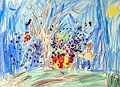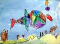 Daden, You are making great lines and shapes!! Have you been practicing? You did a great job painting the different areas! I looks like you can see a long distance, over the hills and far, far away!