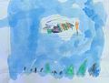 Wow, Daden!! What a great day for a hot air balloon ride!! The sky is blue with just a few fluffy clouds! Great job cutting out the balloon!