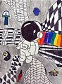 I like how the curved lines draw your eyes to the astronaut. I also like the pops of color. The other objects tell the story of what’s happening around the astronaut like you’re really in outer space! I just love it!