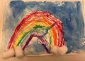 Oliver, this is a really nice rainbow. The blue of the sky is very creative and it is very "textured." Like a real sky, it is lighter on one side and darker on the other. It makes it look like it just stopped raining! Great painting! If the rainbow was done with crayons and the sky was done with watercolors, you have used "mixed media" by using more than one type of material to create your artwork!!!