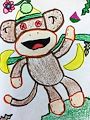 I love your monkey Blake . He looks very happy and looks like he is having fun! love the colors !