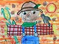 I love your scarecrow Blake! You did such a great job with the detail on the acorns and bird! I also like the texture on the scarecrow’s face! Great job Blake! Love, Mom