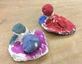 Cool! Is that clay or plaster Paris! I think that is you and me swimming at Silver Lake! What do you think your creations are? You are a talented artist! Or maybe they are two ducks from your Mommy's classroom!