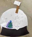 Grandma really likes your snow globe. I especially like the pretty tree. I like to see all your artwork from kindergarten. Keep up the good work.