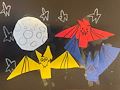 Evie I love your artwork made with triangles , circles and rectangles and stars. The colorful bats are great! I can’t wait to see your next artwork. You are so talented! Love, Grandma