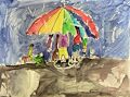 I love the colors and the perspectives on this painting. It makes me happy to see it.