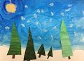 I LOVE this artwork. The snow and tree branches are done so well. The ornaments are so colorful and add the right amount of pop to the picture. Great job!