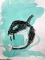 We love this picture, its currently hanging up in the dining room. It reminds me of winter. It's like mountains with trees that skiers can go down. Looks good Elena!
