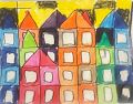Hi Ethan, I love your painting with all the colorful buildings! It looks like downtown Philadelphia with skyscrapers close together. It reminds me of a sunset with the yellow sky. So beautiful!
