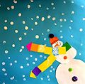 What a bright, colorful, happy snowman!