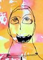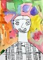 Wow! What a great self-portrait! Your hair looks very nice, and I notice a few missing teeth! I also like the mixed-color background!