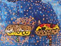I love the bright colors in your painting! I have lots of guesses, but I'm not sure exactly your thoughts as you composed this! You'll have to tell me all about it the next time I see you!