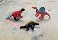 Your leaf art certainly does capture the 3-D quality that was part of the project. It has a lot of depth. Good job and I can imagine a dinosaur hiding there.