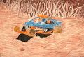 You did a good job with the various shades of brown in both the sand and the grass. With the brush strokes the sand could also be waves of muddy water. It is very interesting.
