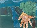 Wow! What an interesting way to use your hand. I love the 3-D effect and the colors you used. :)
