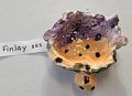 This clay or ceramic creation looks like a little chili bowl, with a handle. It has you and your mom’s favorite colors! It’s cute! Especially the spots. :)