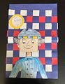 Amazing job with weaving and then drawing and coloring George Washington, Leonard!