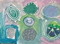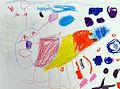 Elsie, I love the circles, some solid and some not. I would like to know more about your description of this colorful drawing! The yellow kind of looks like a turtle head to me.
