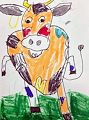 Elsie, I love the colorful bats flying in the night sky! They all have very different expressions on their faces. The moon is pretty cool too. I am a big fan of yours! You are an excellent artist!