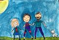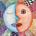 I love so many things about your artwork Nora. In this picture I love the various shapes and colors in the background using warm and cool colors. The way the sun and moon meet but stay separate is very creative. It's very cool the way the moon is sleeping and the sun is wide awake. Great job!!! Love you Nana D.