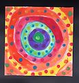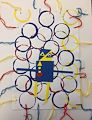 The artists use of mixed materials to make this picture really makes it stand out. I love the use of yarn around the border. The primary colors make this piece of artwork come alive!!