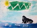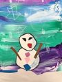 Lovely snowman, I love this background colour, mommy loves your drawing so much??