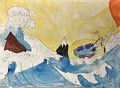 Love the turtle in the ocean Viv! The smiling sun makes it!