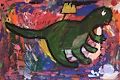 Nice dinosaur, you always drew one. Nice use of color.