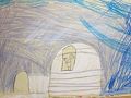 cutting and pasting interesting shapes and colors was always one of my favorite of making art. I still do it a lot. I really enjoy this piece; especially the way you used the color wheel opposites: blue and orange. Also, the way the black accents work makes the image even more dynamic. So Jameson, if you have any questions about what Grandma Caren just wrote, give me a call