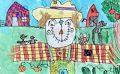 Thi s an awesome picture, Bennett. I love all the details; the little crows on the scarecrows arm, his striped shirt, the horse sticking its head out of the barn, the pumpkins and watermelons in the garden and the apples in the tree. What a great job!