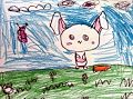 Hey Fallon, Gommo and I LOVE Your drawing. That looks like Shadow, Your neighbor’s cat. Is that a “cross” in the sky?